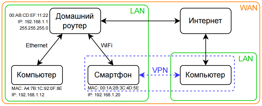 - LAN (Local Area Network) - локальная сеть внутри квартиры, дома, офиса