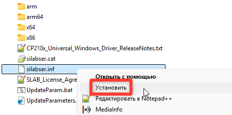 SETUP.EXEиз папки Driver, в окне нажатьINSTALL - CP2102 - распаковать архив, правой кнопкой на файл