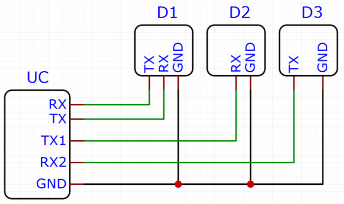 Serial- UART0 (RX0-TX0 / RX-TX)Serial1- UART1 (RX1-TX1)Serial2- UART2 (RX2-TX2)