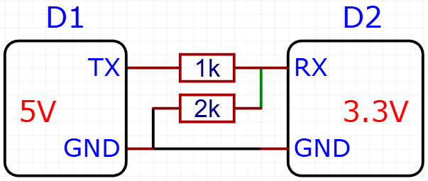Напряжение питания устройств может отличаться, например 5V МК и 3.3V датчик-модуль, либо наоборот. В этом случае нужно смотреть описание устройства с более низким напряжением питания - поддерживает ли оно высокое напряжение на вход UART (часто используется термин "толерантно", например 3.3V микросхема может быть толерантна к логическому уровню 5V на входе UART). Если не поддерживает - нужно понизить напряжение на линии передачи к этому устройству при помощи делителя напряжения или специального преобразователя уровней: