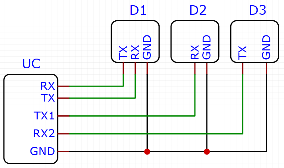 Serial- UART0 (RX0-TX0 / RX-TX)Serial1- UART1 (RX1-TX1)Serial2- UART2 (RX2-TX2)