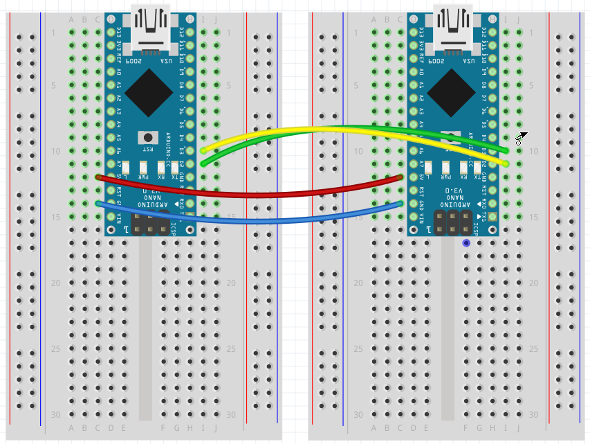 Два МК могут общаться между собой по UART, но для этого нужно придумать свой протокол связи, либо использовать что-то готовое поверх Serial (например, JSON). В уроке про монитор порта мы разбирали простейший текстовый протокол связи вида "команда:значение", давайте рассмотрим пример взаимодействия двух Ардуинок. Для примера я свяжу две Arduino Nano по SoftwareSerial, штатный Serial останется для вывода в монитор порта: