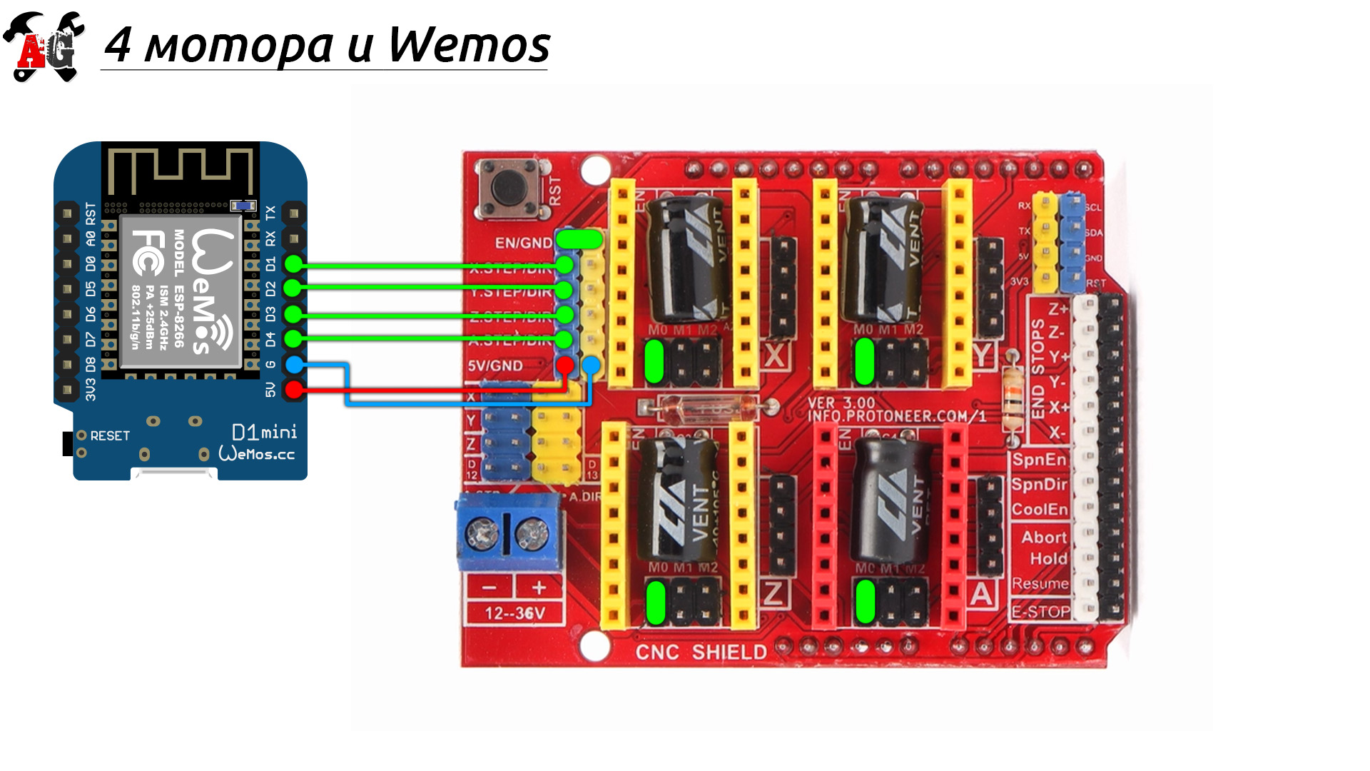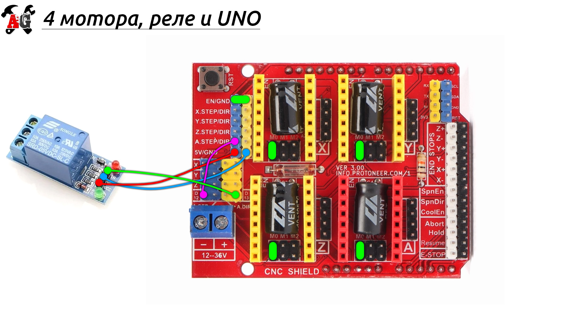 - Чепушилд с драйверами и UNO: али али